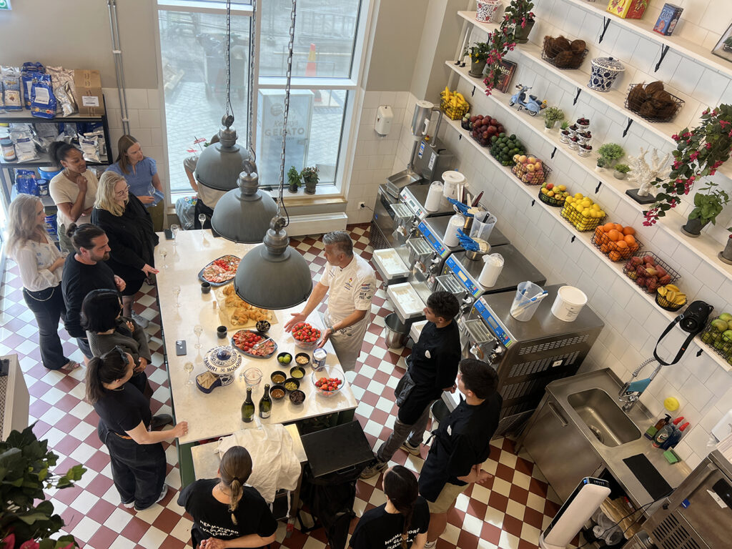 Samla kompisgänget, avdelningen eller möhippan för en oförglömlig upplevelse på vår Glassfabrik i Nacka. Tillsammans skapar ni en helt egen gelatosmak – från idé till färdig produkt.